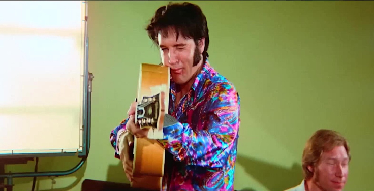 Tras una ágil y fluida introducción en la que se reconstruye los inicios de Elvis, su paso por el ejército y su etapa como “actor” en Hollywood, llegamos al corazón del film, a fines de los '60, cuando decide prácticamente instalarse en Las Vegas para esos 1.100 conciertos (Presley nunca se presentó fuera de Norteamérica). Y lo que vemos, con una calidad de imagen y sonido portentosa, extraordinaria, descomunal, es a un showman carismático que juega con el público y a un cantante único que va moldeando cada presentación a su antojo (tenían con su banda y sus coristas varias decenas de canciones perfectamente ensayadas), improvisando sobre la marcha qué temas interpretar.