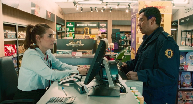 Pero, más allá de los avatares de las coproducciones y de las nacionalidades de los artistas, lo verdaderamente importante es que Un cabo suelto resulta una experiencia tan simpática como disfrutable. El antihéroe del film, que por momento recuerda a los de Aki Kaurismäki, es Santiago Pallares (el tucumano Prina), un policía argentino del que solo sabemos que ha sido testigo de algo que no debía saber. Se salva de forma milagrosa de que lo maten atropellándolo con un auto y huye con lo puesto al Uruguay con dos “pesados” (Elías y De Silva) siguiéndole los talones. En un free shop de la frontera entre Fray Bentos y Puerto Unzué / Gualeguaychú, conoce a Rocío (Pilar Gamboa) y el flechazo (en él) es inmediato.